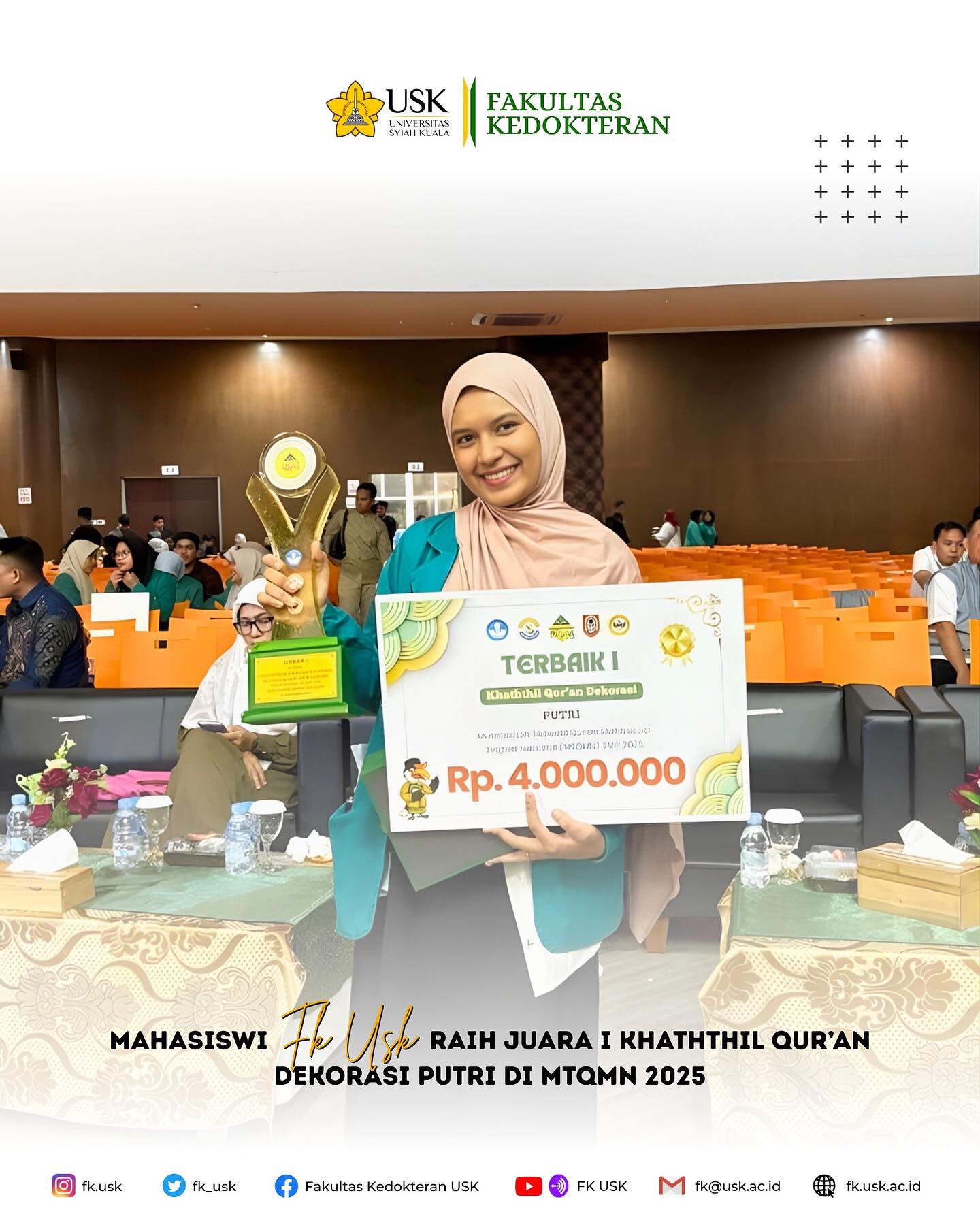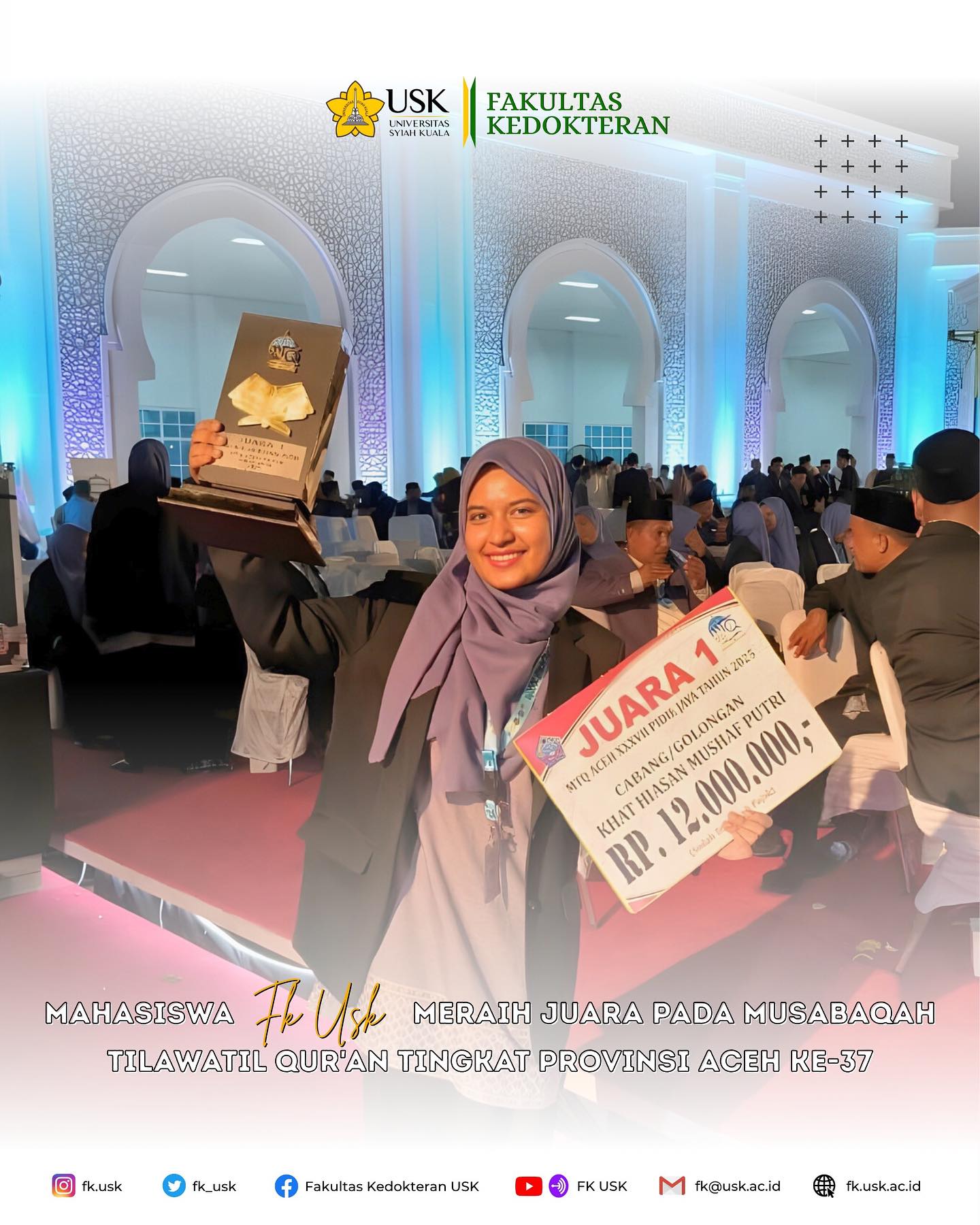 Alhamdulillah mahasiswa FK USK meraih juara pada Musabaqah Tilawatil Qur’an tingkat Provinsi Aceh ke-37 yang diselenggarakan di Pidie Jaya pada tanggal 1-8 November 2025 Barakallah kepada para juara. Semoga...