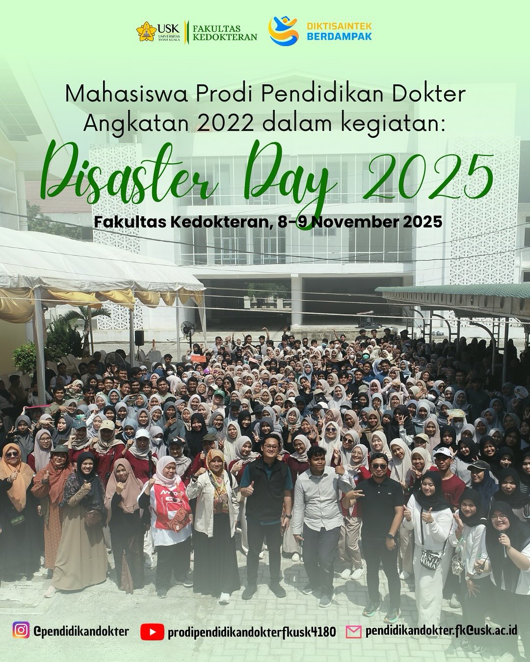 Mahasiswa Pendidikan Dokter Angkatan 2022 telah melaksanakan kegiatan “Disaster Day: Simulasi Penanganan Bencana Banjir Bandang” pada 8–9 November 2025 bertempat di Fakultas Kedokteran Universitas Syiah Kuala. Kegiatan ini merupakan...