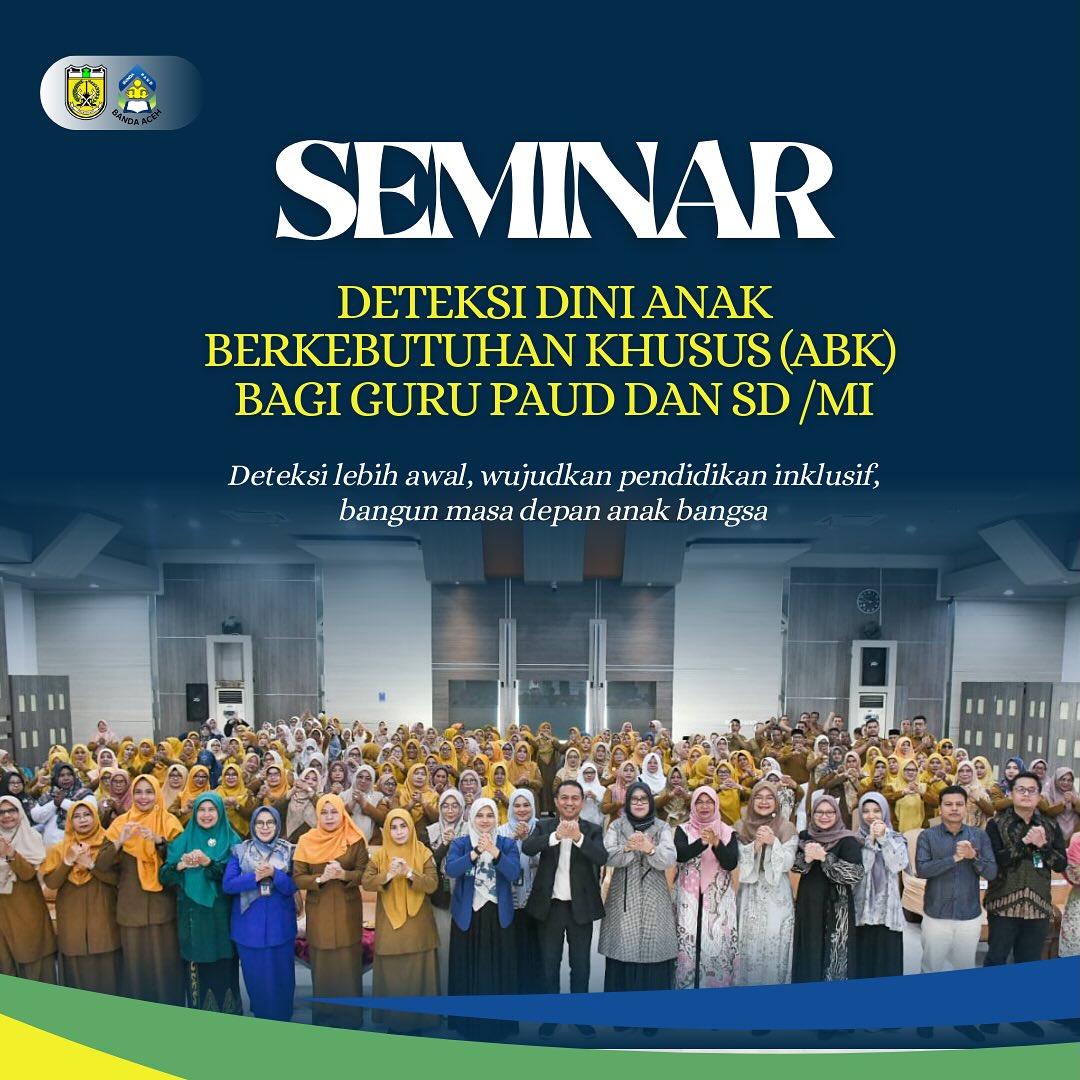 Kelompok Kerja (Pokja) Bunda PAUD Kota Banda Aceh bekerja sama dengan FK USK menggelar Seminar dan Pelatihan Deteksi Dini Anak Berkebutuhan Khusus (ABK) bagi guru PAUD dan SD/MI se-Kota...