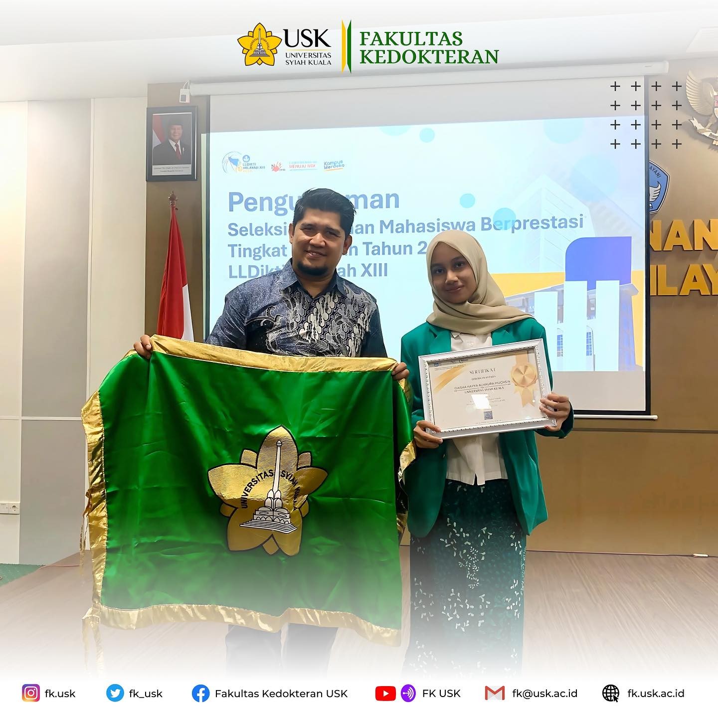 Prestasi membanggakan dari mahasiswa FK USK! Selamat kepada Gaisha Hayya Alhaura Muchsin yang berhasil meraih Juara 1 Pemilihan Mahasiswa Berprestasi (Pilmapres) USK 2025! Dedikasi, kerja keras, dan semangat belajar...