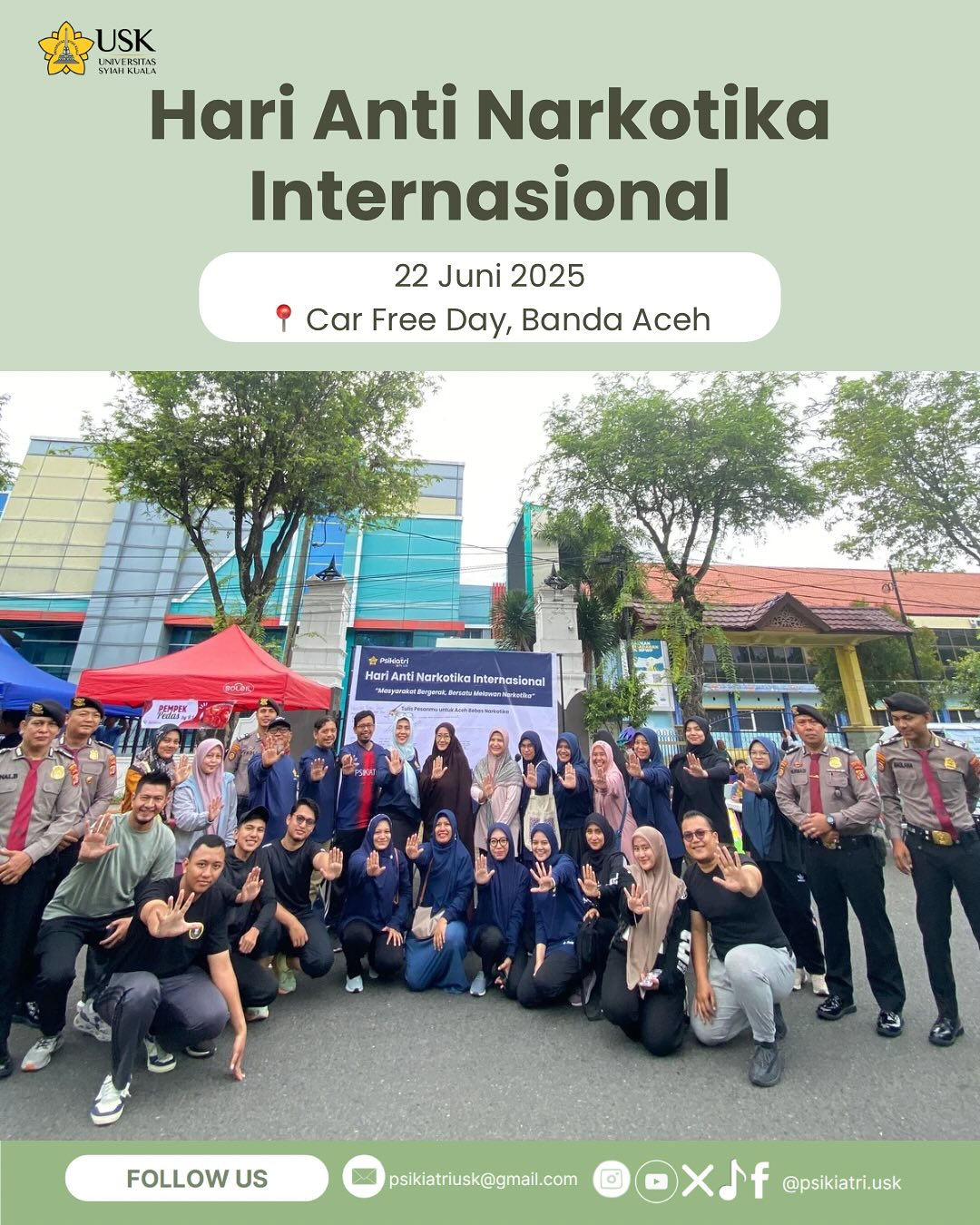 Setiap tanggal 26 Juni, dunia memperingati Hari Anti Narkoba Internasional Fakultas Kedokteran Universitas Syiah Kuala turut mendukung upaya global dalam memerangi penyalahgunaan narkoba. Mari kita ciptakan lingkungan sehat, aman,...